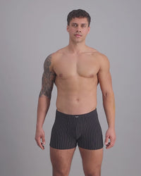 Our Cotton Stretch Boxer Trunk in Black with White pinstripe has firm support, comfort and breathability with stretch cotton elastane fabrication. Also available in assorted colours and stripes to suit your style.
