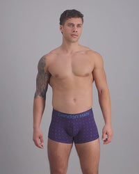 Retros Print Mens Trunk in INKY SPOT PRINT. Feature shot